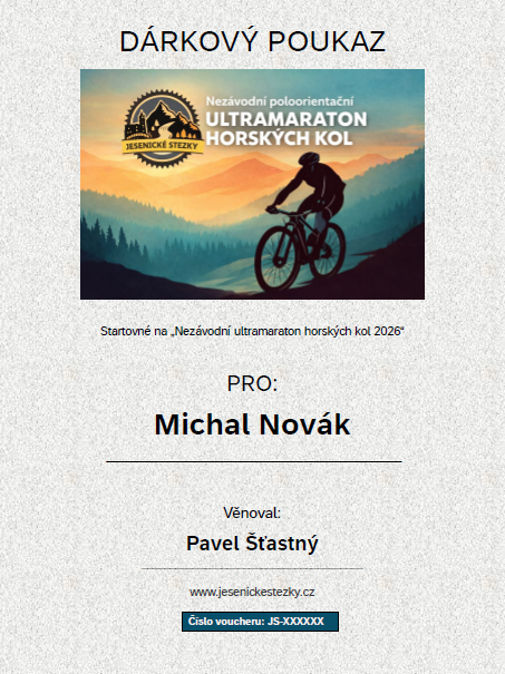 Darujte účast na Jesenických stezkách svým blízkým v podobě dárkového poukazu.
